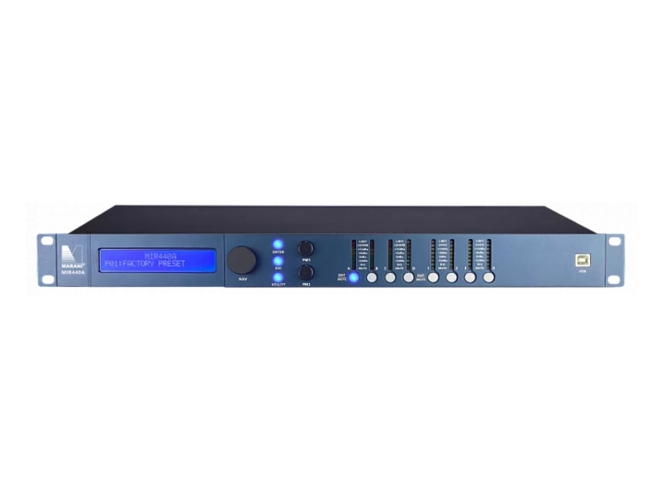MARANI MIR440A - цифровой аудиопроцессор, разработанный компанией Marani. Обладает чрезвычайно низким уровнем шума, высоким динамическим диапазоном и мощным внутренним DSP.